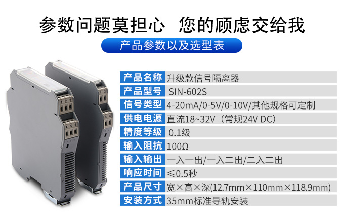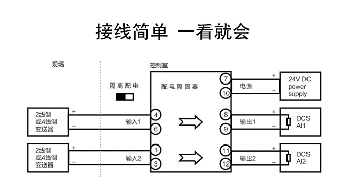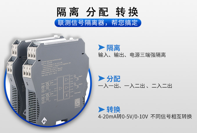 新款隔離器可向變送器提供隔離的工作電源,同時(shí)檢測(cè)回路中的電流,經(jīng)隔離變送輸出電流或電壓信號(hào)。 輸入端、輸出端及電源端三端隔離,具有響應(yīng)快、功耗低、溫度特性好等優(yōu)點(diǎn)。